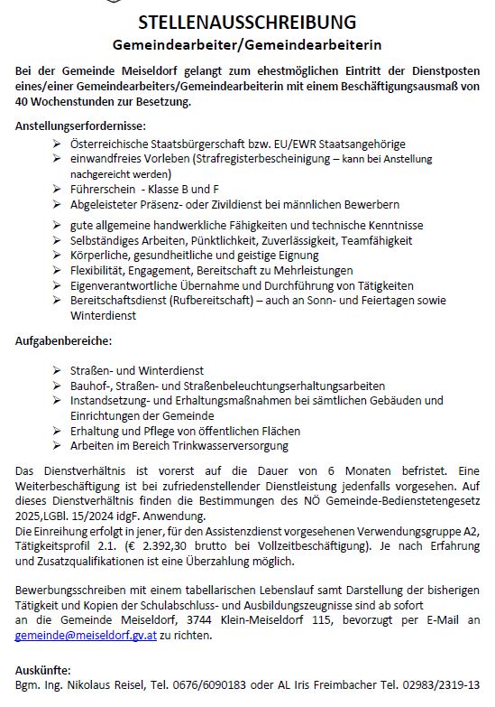 Die Gemeinde Meiseldorf betreffen vor allem folgende Maßnahmen: